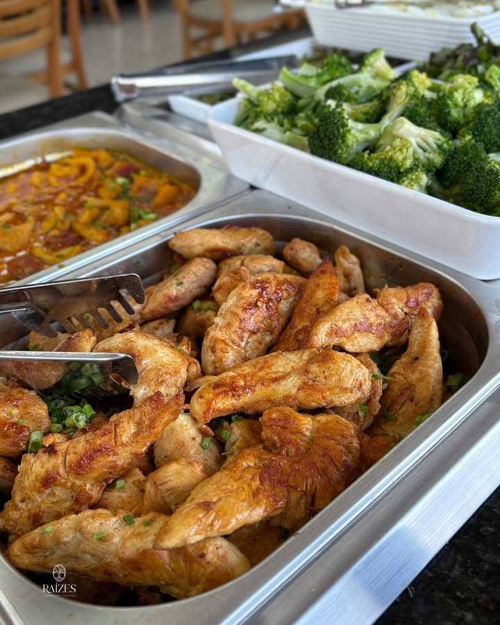 No Raízes, você escolhe como prefere aproveitar: buffet livre ou por quilo. Assim, pode montar o prato do seu jeito, de acordo com sua fome ou sua rotina. É a liberdade de escolher a opção que mais combina com você, sem abrir mão da qualidade.